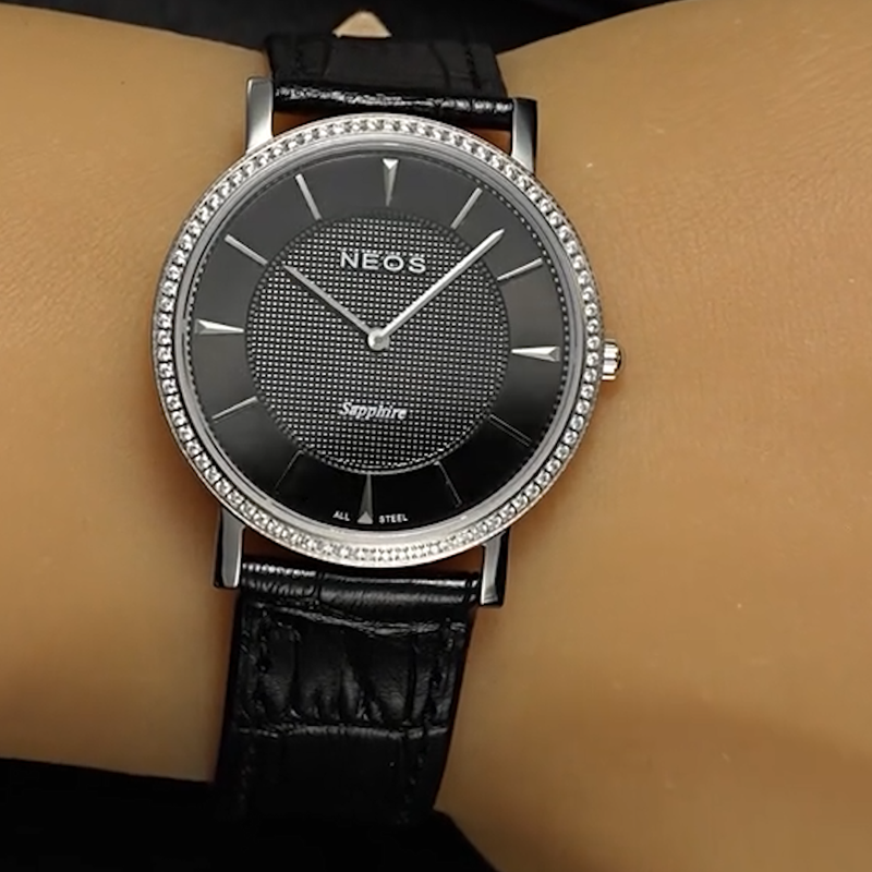 Đồng hồ nam đẹp dây da Neos N-40577AM Sapphire vành đính đá ruby sáng bóng lấp lánh, mặt số đính 12 viên kim cương làm cọc số giờ vô cùng ấn tượng và sang trọng ngoài ra mẫu đồng hồ này được thiết kế siêu mỏng với độ dày chỉ 6mm đường kính 40mm kích thước dây 20mm, bộ vỏ được sử dụng thép không gỉ 316 đạt chuẩn châu âu giúp cho chiếc đồng hồ của bạn luôn sáng bóng như mới mà không bị oxy hóa.
